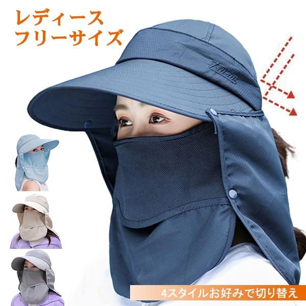 2WAY装着 UVカット帽子 レディース 紫外線対策 日よけ帽子 完全遮光 UV遮断率99% ガーデニング 農作業 サンバイザー 日除け帽子 冷感素材 つば広 日焼け防止 フェイスカバー 首ガ あご紐