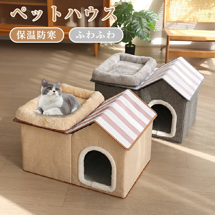 おしゃれ 冬 ペットベッド ペットハウス キャットハウス ドーム型 2階 猫用品 多頭用 ペットアーパト 爪研ぎ 折りたたみ式 寒さ対策 防寒 猫ベッド 洗える 四季通用 寝床 室内 防風 あったか