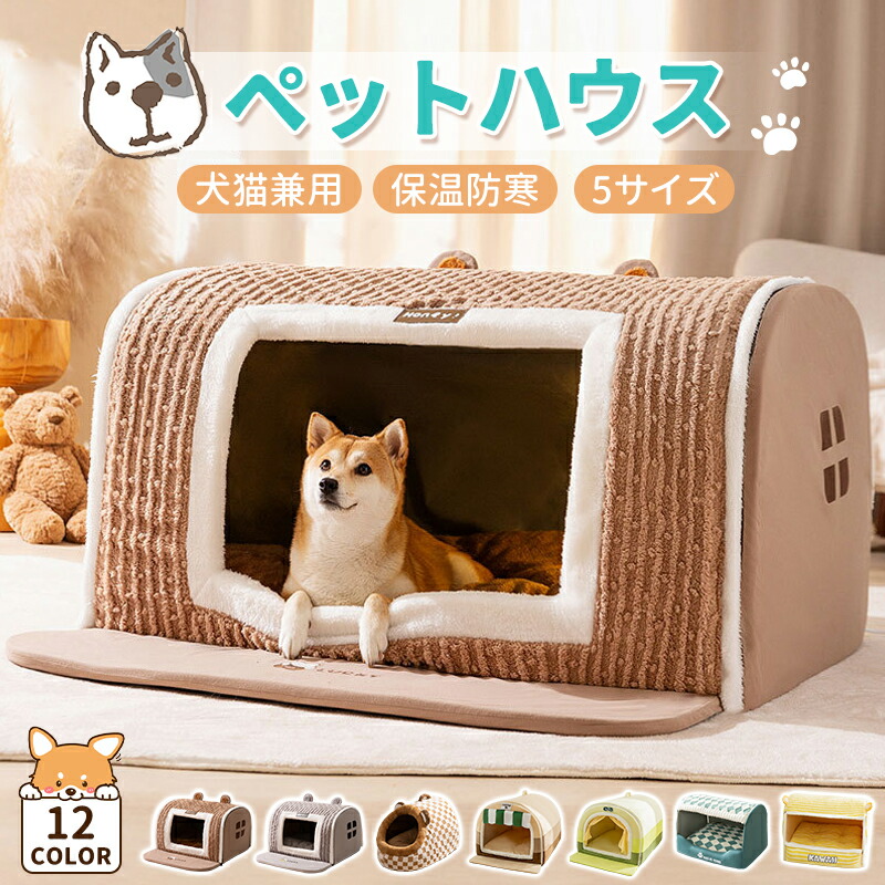 ペットベッド ペットハウス 大型犬 冬 ドーム型 おしゃれ犬 ハウス猫ハウス 快適 冬寒さ対策 保温 防寒 暖かい ふわふわ保温 ぐっすり眠れる 犬猫兼用 クッション付き