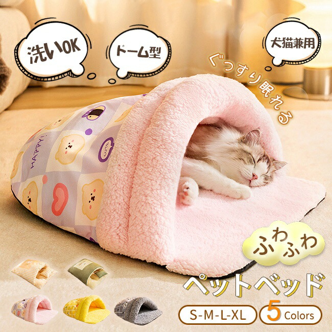 全5色!S M 洗える ペット ベッド ドーム型 寒さ対策 猫 犬 ふわふわで暖かくて大満足!