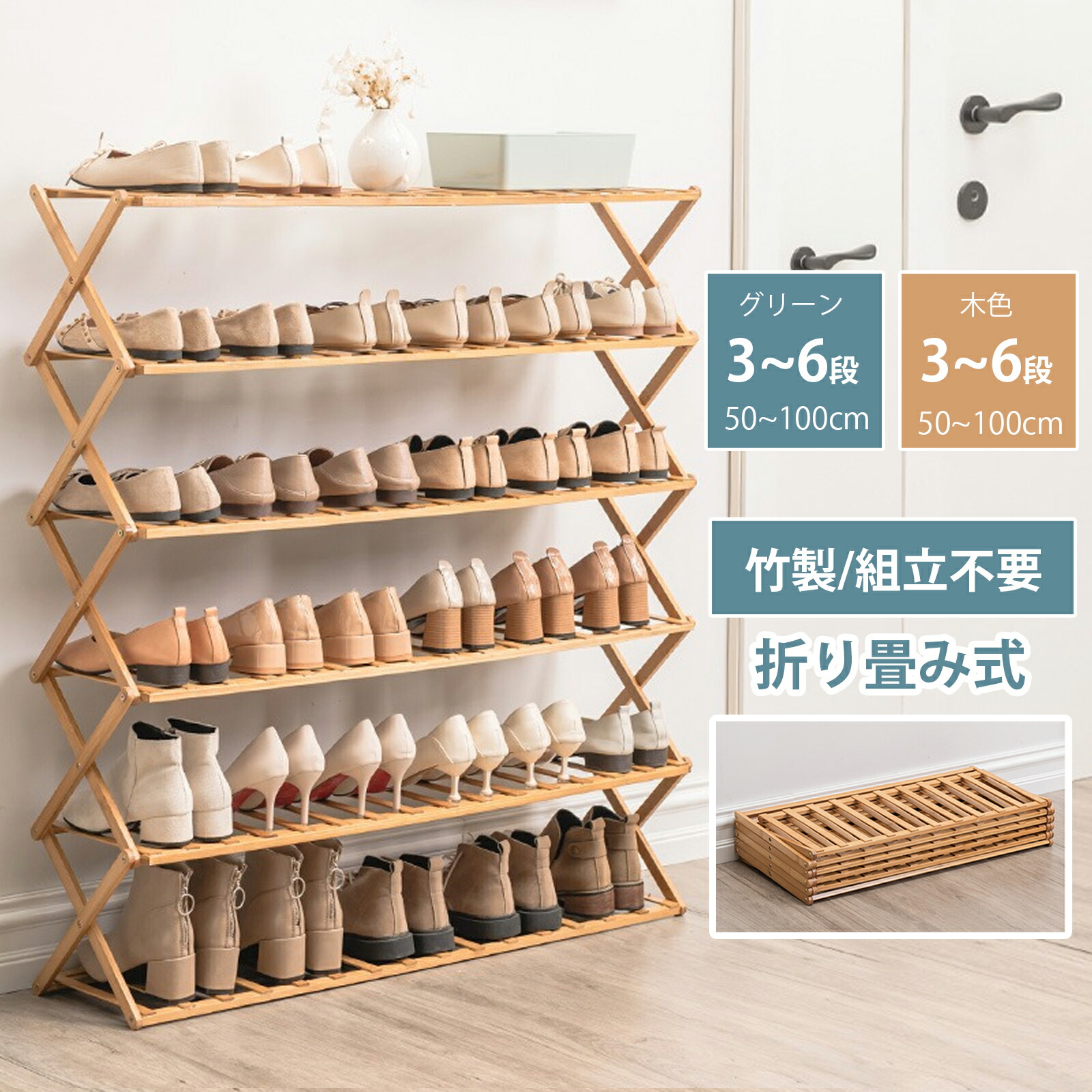 6段 5段 4段 天然竹製 折畳式 シューズラック 完成品 組立簡単 靴 収納 強力な積載量 耐久性 玄関収納 省 スペース 靴 ラック シューズラック スリム 折りたたみ