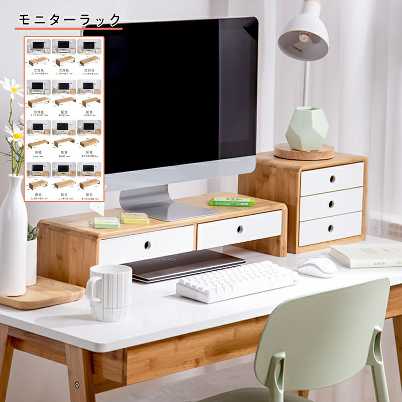 机上台 シンプル 卓上 ナチュラル モニターラック ディスプレイ台 竹製 PC台 引出し付き 引出無し 机上ラック モニタースタンド モニター台 液晶モニター台 デスク上スタンド 卓上ラック デスク上