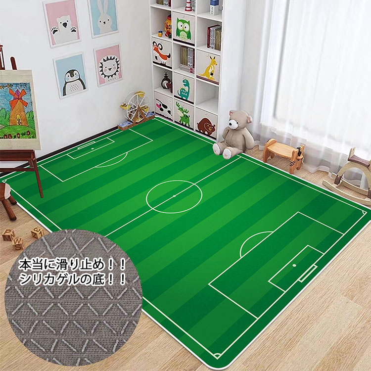 キッズラグ 洗える サッカーラグ トレーニング 室内 複数サイズ ビッグ 約200*400 防音 大判 長方形 サッカー場柄 遊び ラグ カーペット 子供用マット 洗える 滑り止め付