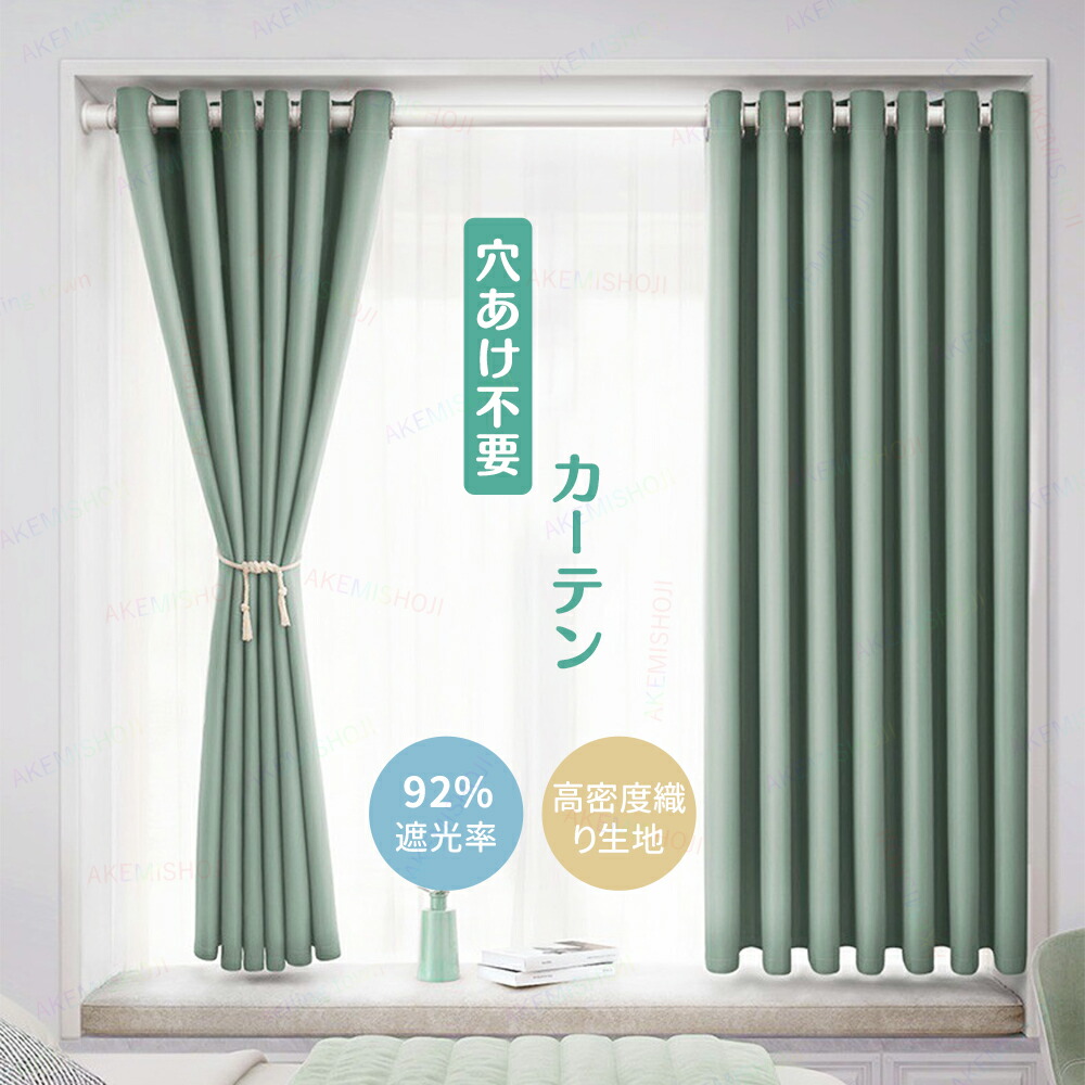 穴あけ不要カーテン 厚地カーテン 遮光カーテン つっぱり式カーテン 高いドレープ性 透けない 上品 見えにくい 伸縮ポール付き カーテン 織り生地 両開き 片開き 工具不要 プライバシー 貸家 遮光