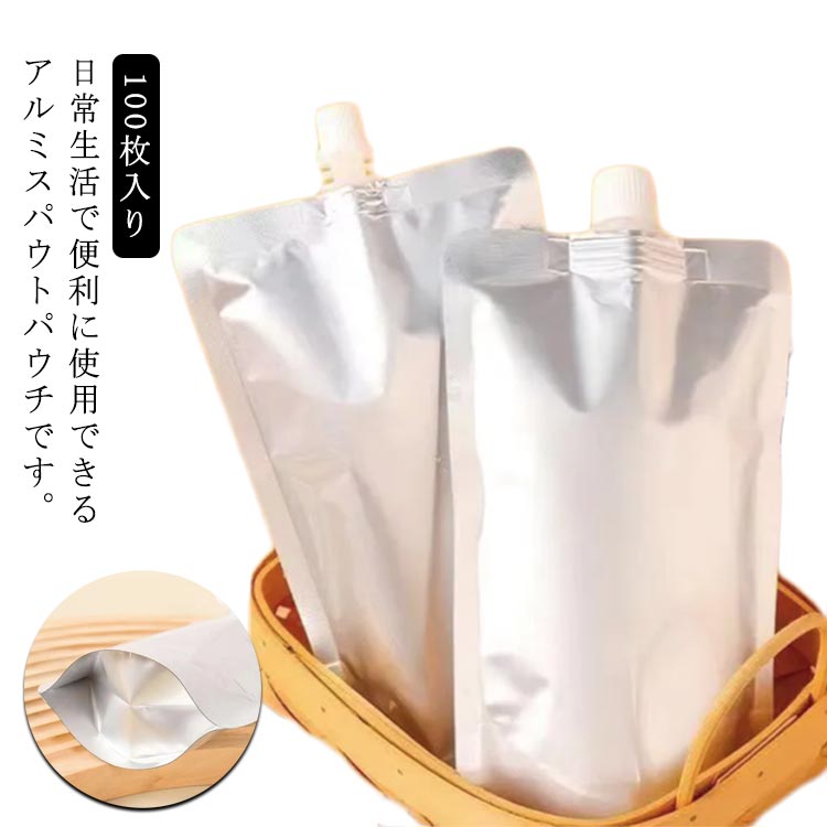 100枚入り アルミ製 スタンドパウチ 100ml 150ml 200ml 250ml 300ml 380ml 500ml 詰め替え容器 アルミパウチ スパウトパウチ キャップ付き 袋 ふた付 自立式