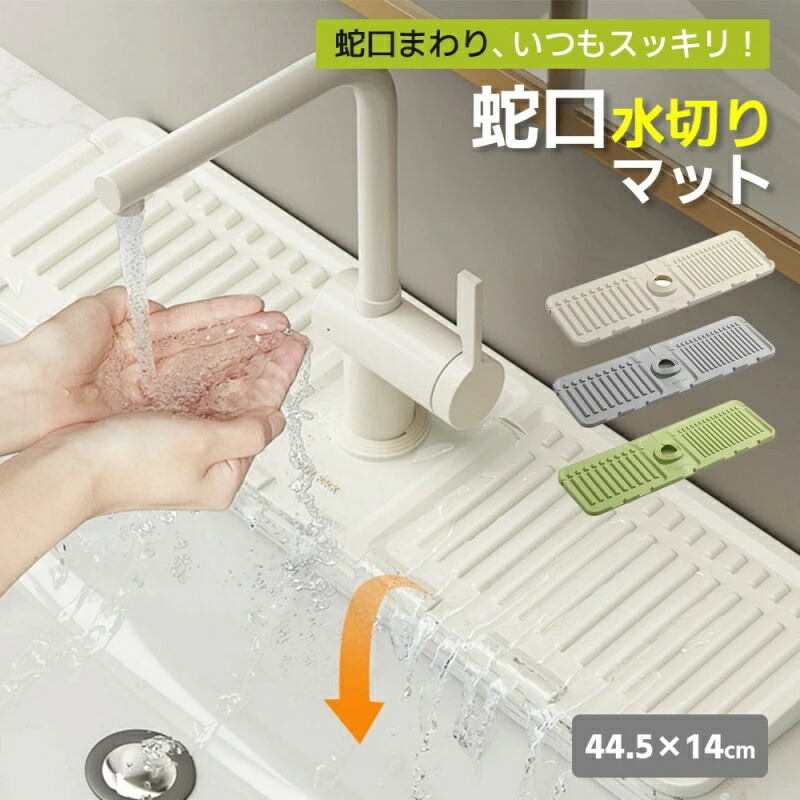 シリコーン蛇口 水切りマット 大判 斜面排水 キッチン バスルーム 洗面台 防水パッド 蛇口用スプラッ 速乾