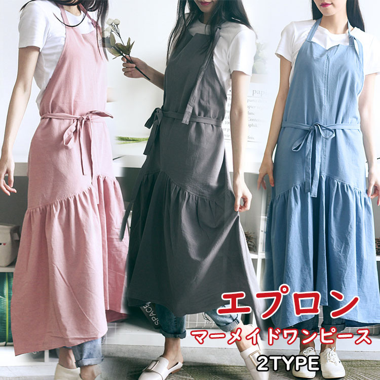 可愛いマーメイドワンピースエプロン♪ ポケットあるとなし2タイプが選べる