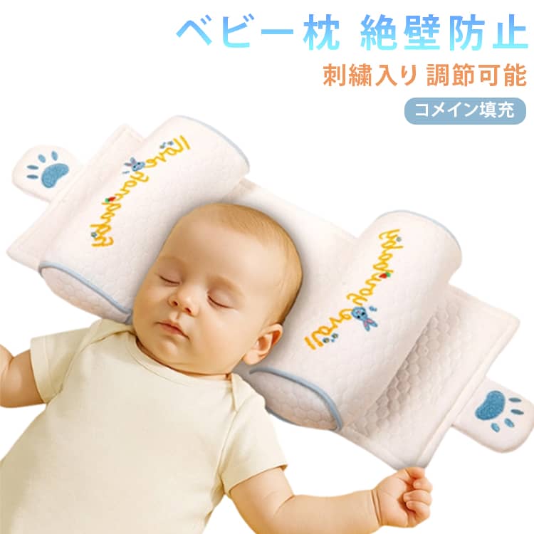 絶壁防止 新生児用 1歳 まくら 枕 赤ちゃん枕 吐き戻し防止 頭の形をよくする ベビー 0~6ヶ月 ベビー枕 寝返り防止 柔らかい 偏頭防止設計 通気性 刺繍 調節可 カバー取り出し可 3Dエア