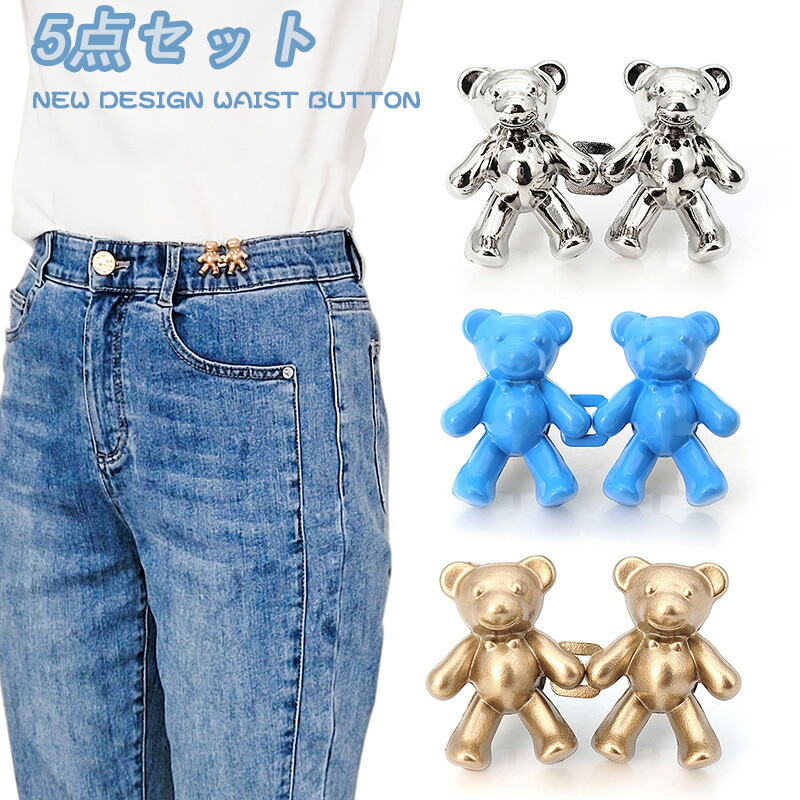 ウエストクリッパー ウエスト調節クリップ ベルト 可愛い ボタンピン かわいいくまジャン ボタン ピンズ - 調節可能なジーンズボタン 縫製不要 メタルボタン フック サイズ調整 交換用 ウエスト調整
