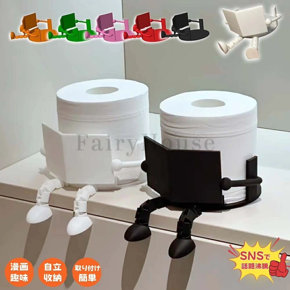 面白い 可愛い クリエイティブ トイレットペーパー収納ラック バスルーム リビング飾り自立 かわいい ペーパーディスペンサー ユニーク 携帯用 面白いぶら下がり脚読書用 可動ジョイント付き 収納