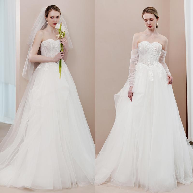 ウェディングドレス ウエディングドレス 二次会 2.5次会 結婚式 披露宴 前撮り 後撮り ブライダル ロングドレス 花嫁 Aラインドレス ビスチェ 付け袖 2way 海外挙式 フォトウェ ファスナー
