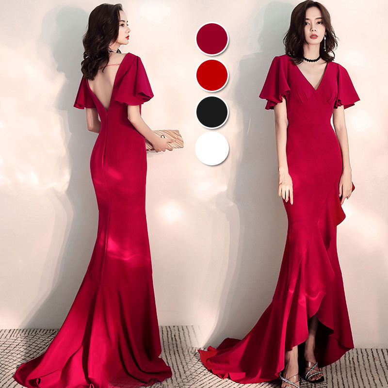 ウェディングドレス ウエディングドレス マーメイドドレス 赤 ロングドレス タイト カクテルドレス 演奏会 カラードレス 結婚式 花嫁 二次会ドレス パーティードレス 発表会ドレス イブニングドレス