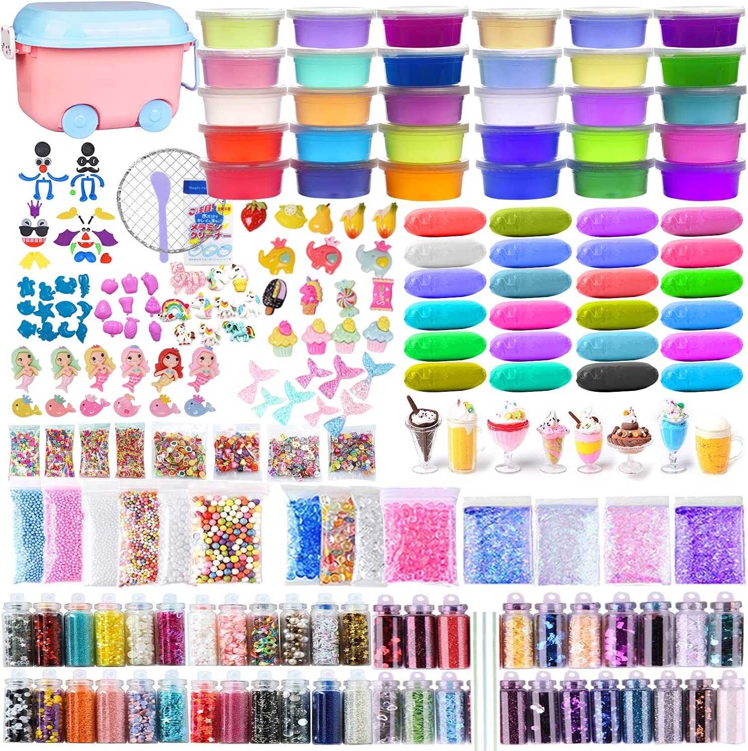 スライム キット 粘土 24色スライム+6色ねんど おもちゃ アイスクリーム パール レインボー 果物切片 動物モデル フォームビーズ スパンコール スクイーズ slime diy 手作り