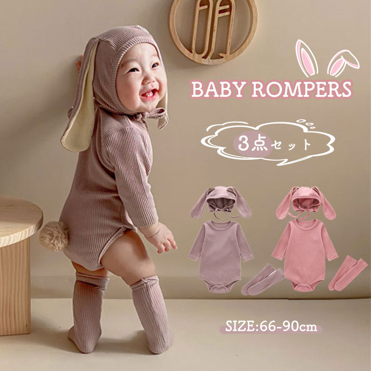 ハロウィン衣装 ロンパース 3点セット うさぎ 女の子 男の子 子供 おしゃれ 赤ちゃん ベビー服 キッズ カバーオール ウサギ 綿 コットン 可愛い クリスマス ハロウィン 仮装 出産祝 パーティー