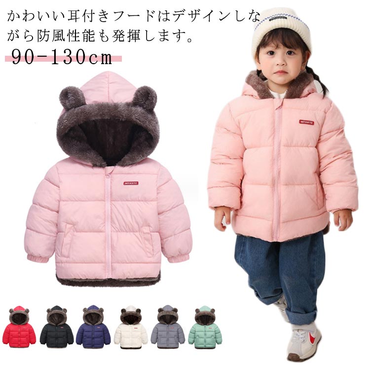 ダウン風コート 中綿コート 子供服 冬 フード付き 耳付き 可愛い 女の子 男の子 裏起毛 子ども服 極暖 中綿ジャケット アウター キッズ 長袖 クマ耳 防寒 お出かけ 通園 おしゃ 暖かい