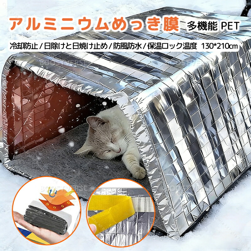 アルミニウムめっき断熱シート ペット用 野良猫 防寒シェルターカバー 軽量 防寒 防風 多機能 保温ブランケット 猫 犬 屋外用 防水 日除け 3枚 両面テープ付き 貼り付 130×210cm