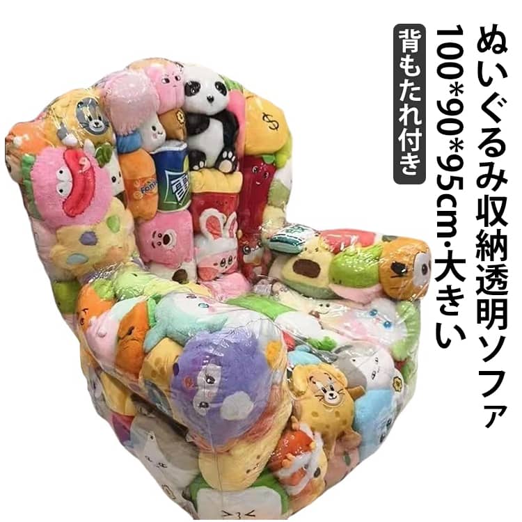 ぬいぐるみ 収納 ソファ 大きい 大型 透明 ビーンバッグ ぬいぐるみ収納 ソファー 椅子 チェア 背もたれ付き ぬいぐるみ収納チェア ぬいぐるみ収納ソファ クリア 見せる収納