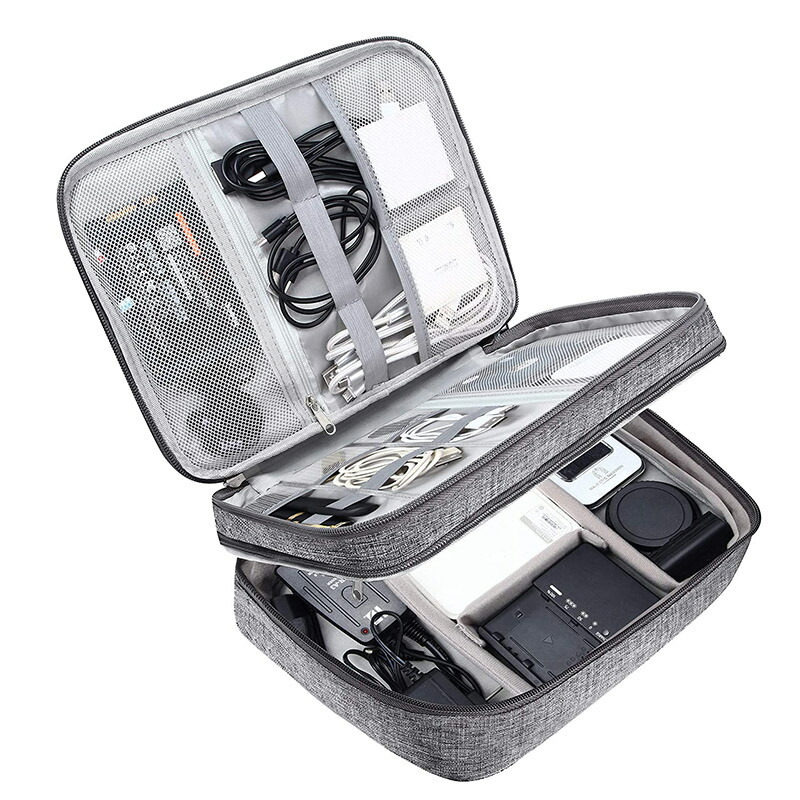 電子バッグ トラベルケーブルアクセサリーバッグ 防水 ポータブル収納ケース ケーブル、コード、充電器、電話、アダプター、パワーバンク、ハードドライブ用 二層電子機器オーガナイザー