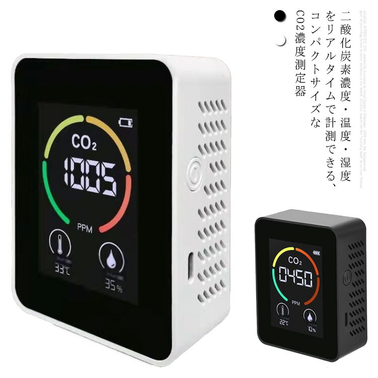 濃度計 多機能 2 温度 湿度 測定器 二酸化炭素センサー 空気品質測定 可視化 換気提示