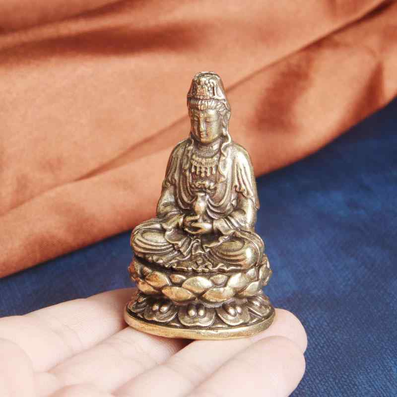 置物 インテリア 真鍮 観音 菩薩 像 卓上 装飾 礼拝 工芸品 レトロ レイアウト コレクション 銅 軽量 小さめ 彫刻 リアル リビング 玄関 精巧
