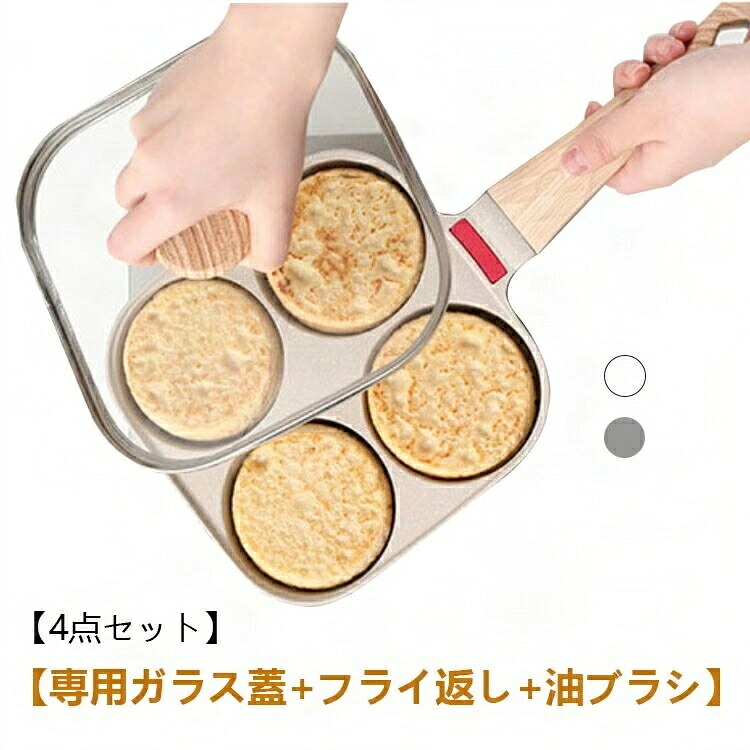 大判焼き器 フライパン IH対応 洗いやすい お弁当 4つ穴フライパン 仕切り付き くっつかない 目玉焼きフライパン 卵焼きフライパン 4点セット ガラス蓋付き 目玉焼き 大判焼き 今川焼 今 卵焼き