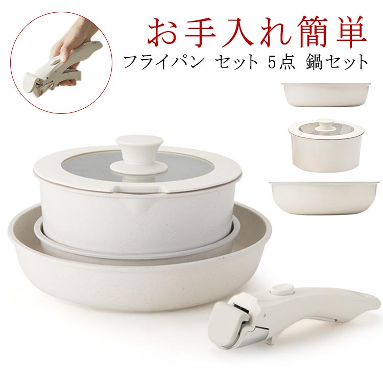 焦げ付かない セット 鍋セット フライパン IH対応 ガス火対応 取っ手が取れる ソースパン コンパクトに収納可能 セラミック フライパンセット 蓋付き 鍋 積み重ねOK 子供 お手入れ くっつかない