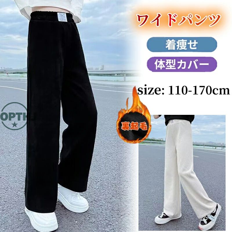 パンツ ゆったり キッズ ガウチョパンツ 120 130 140 150 160 170cm 冬 春秋 裏起毛 ウエストゴム 長ズボン ブラック 女の子 通学 高品質 お洒落 シン カジュアル