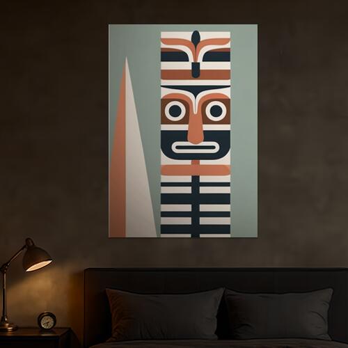 トーテムポール 部族 アート ミニマル 幾何学的 タペストリー 大型 大判 布製 壁飾り 巨大 壁掛け インテリア 大きい 撮影背景 長方形 ベージュ オレンジ 紺 特大