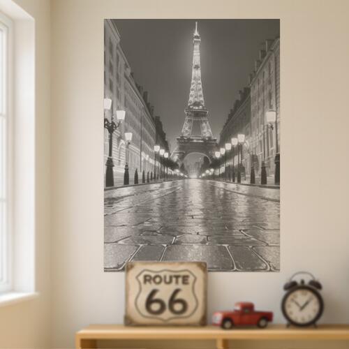 エッフェル塔 パリ 街並み 夜景 石畳 タペストリー 風景 リラックス 名画風 遠景 瞑想 大判 布製 壁飾り 巨大 壁掛け インテリア 大きい 撮影背景 白 黒 グレー 長方形