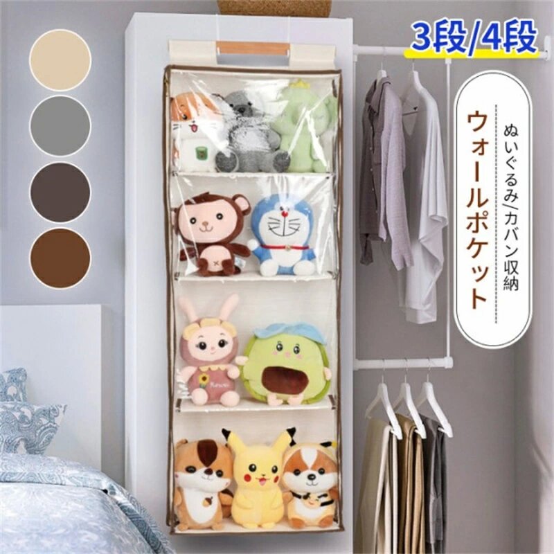 ぬいぐるみウォールポケット ぬいぐるみ 収納 ディスプレイ コレクションケース 4段収納ケース 収納ボックス コレクション 小物 ドア掛け収納式ポケット収納ボックス コレ 見せる収納
