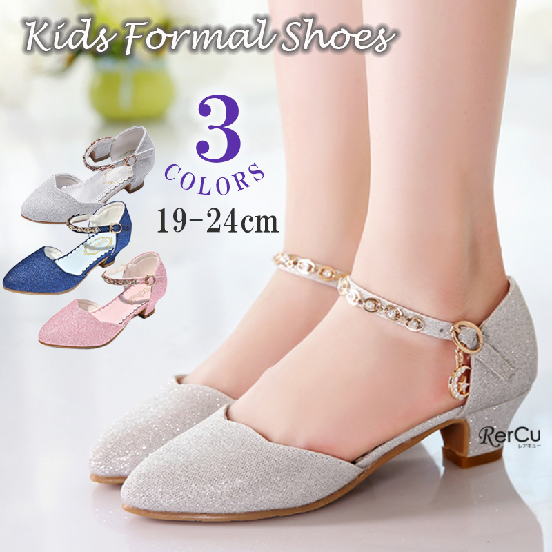 発表会 靴 女の子 ピアノ フォーマルシューズ ピアノ発表会 シルバー ブルー ピンク 結婚式 ドレスアップ パンプル ヒールあり シューズ ジュニア こども フォーマル キッズ