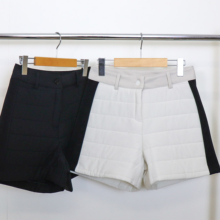 ゴルフウェア レディース 冬 パンツ ショートパンツ 秋冬 中綿 韓国 パディング バイカラー おしゃれ ゴルフウエア ゴルフ ウエア スポーツウェア ホワイト ブラック 黒 白
