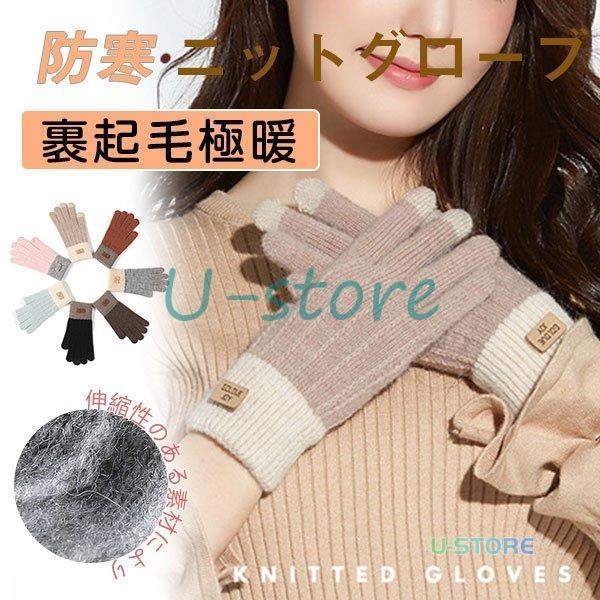 手袋 てぶくろ グローブ レディース スマホタッチ対応 防寒 暖かい 配色 秋冬 ふわふわ ニット おしゃれ 通学 滑り止め付き かわいい