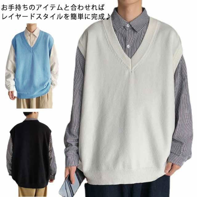 ニットベスト メンズ 秋冬 Vネック ニット ベスト プルオーバー セーター 袖なし おしゃれ 大きサイズ レイヤード ゆったり 厚手 カジュアル 無地 暖かい 防寒 シンプル 重ね着 トップス 保温