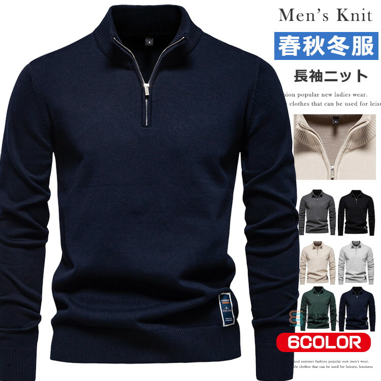 ニット セーター メンズ ハーフジップ ハイネック メンズセーター プルオーバー