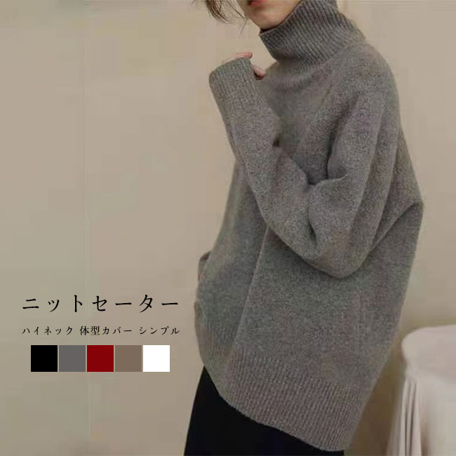 ニットセーター レディース ニットトップス 無地 ハイネック 長袖 厚手 プルオーバー 柔らかい 暖かい ちくちくしない ゆったり 体型カバー シンプル タートルネック 大人カジュアル セーター 秋冬
