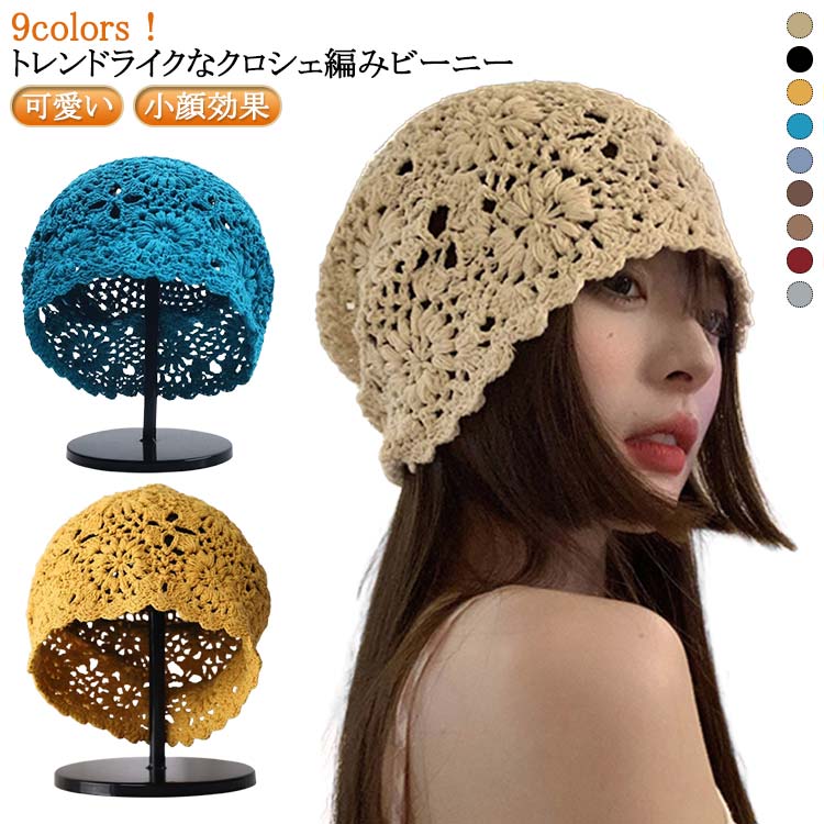 クロッシェハット バブーシュカ ニット ビーニー レディース ニット帽 帽子 キャップ ハット ニットキャップ クラッシャーハット ヘアアクセサリー ヘッドドレス 小顔効果 春 夏 秋 冬