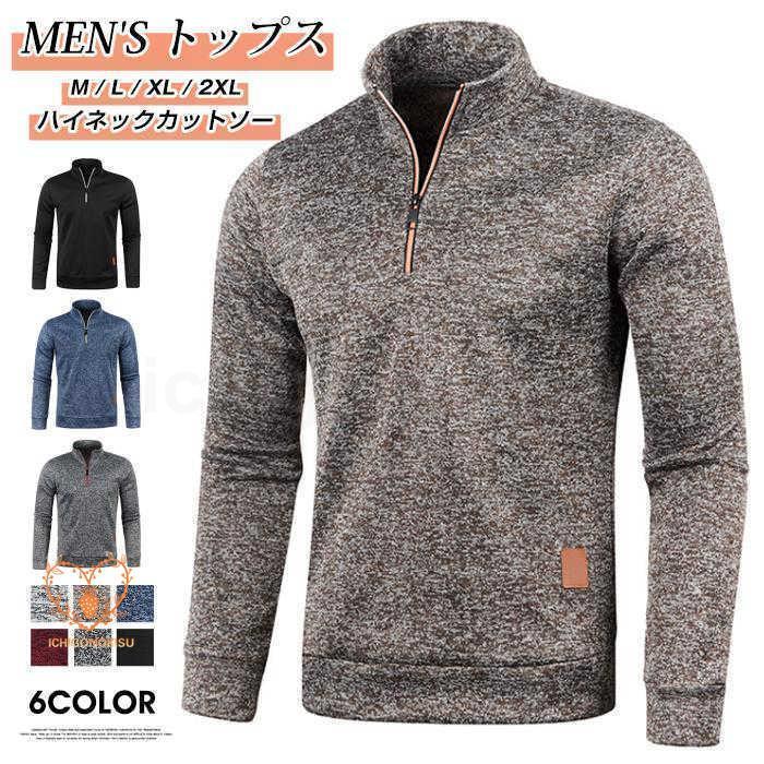 ニットセーター ハイネック メンズ カットソー ハーフジップ スウェット 秋冬 長袖 おしゃれ ジッパー 30代 50代 トップス 立襟 40代