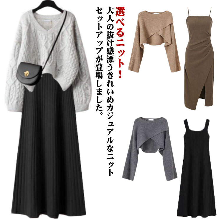 送料無料 ニットセットアップ ワンピース ニットトップス セーター ロングワンピース 大きいサイズ 2点セット 選べる カジュアル おしゃれ