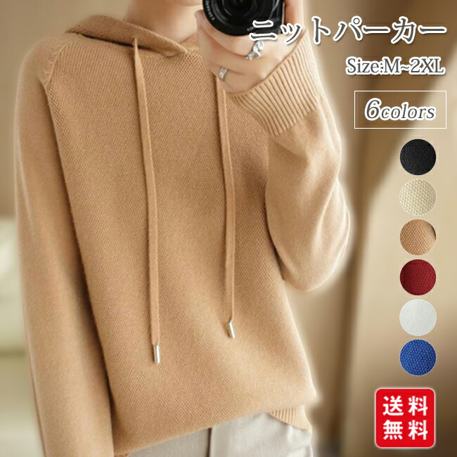ニット ニットパーカー レディース トップス パーカー 長袖 フード付き 秋 カジュアル 無地ニット セーター 冬