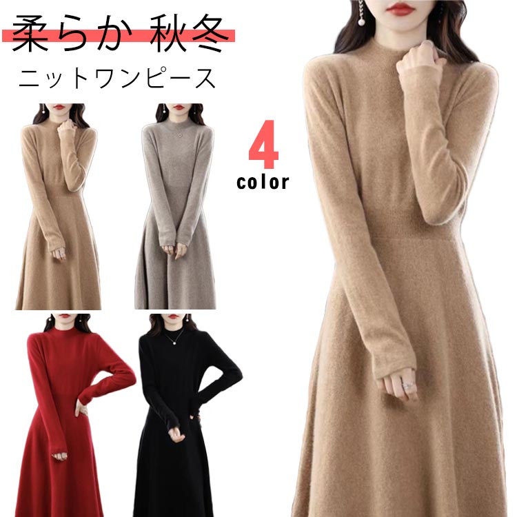 ひざ下丈 ニット 冬 ニットワンピース 秋 レディース きれいめ ロングワンピース 長袖 秋冬 ロング丈 ミモレ丈 ワンピース レディースワンピース お呼ばれ インナーワンピース 体型カバー