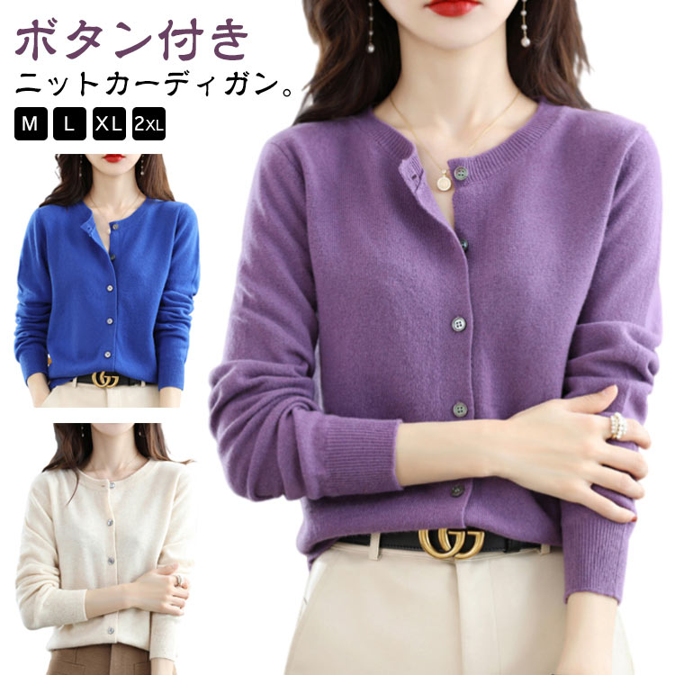 カーディガン レディース ニットカーディガン ボタンカーディガン アウター オフィスコーデにも似合う上品なデザイン