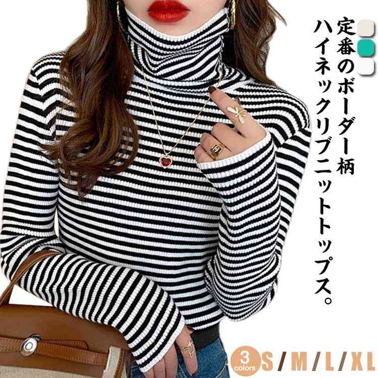 トップス 秋 リブニット タートルネック 冬 ニット 通勤 ハイネック レディース ボーダー オフィスカジュアル カラーニット ニットトップス