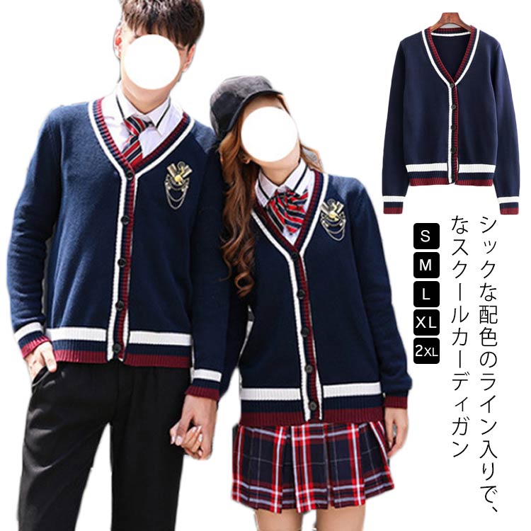 スクールカーディガン ネック 学生服 学生 カーディガン ニット スクールセーター 秋冬 オールシーズン ニット 女子 学校 高校生 ニット