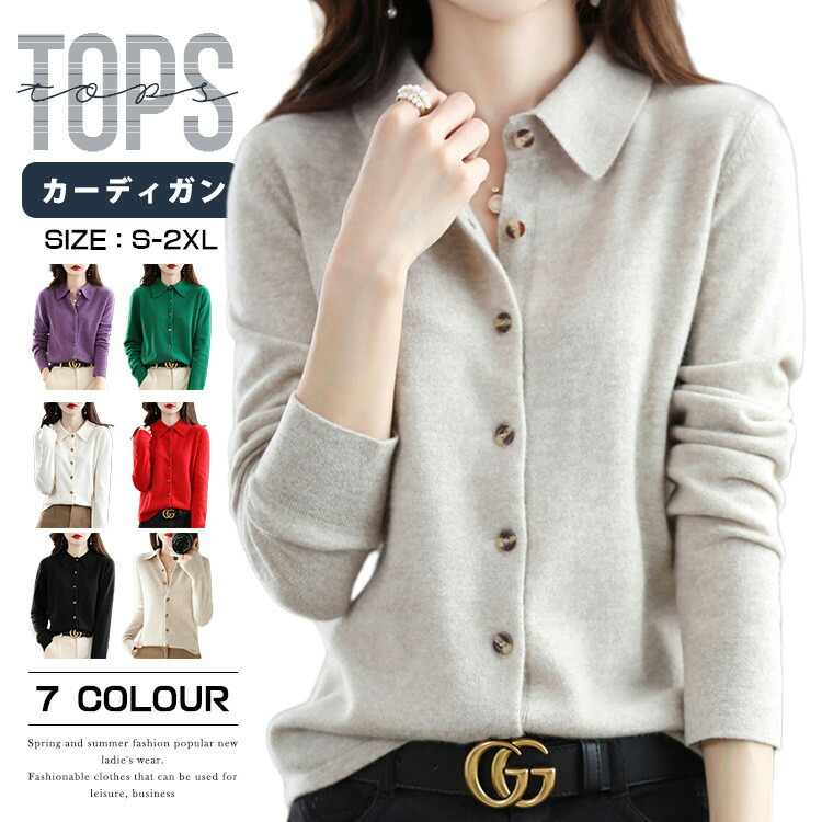 襟付きカーディガン カーディガン レディース セーター ニット トップス 長袖 リブ 襟付き おしゃれ 秋 無地