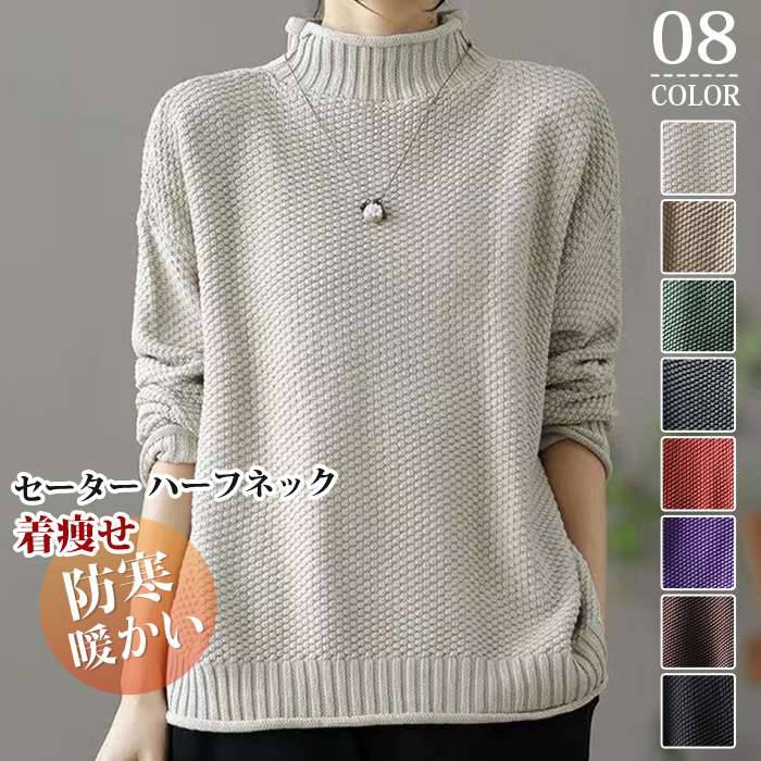 セーター ハーフネック リブ裾 防寒 暖かい 冬 柔らかい ストレッチ トップス レディース ニット 長袖 無地 プルオーバー 可愛い オフィス ビジネス 通勤 シンプル 着痩せ 新作