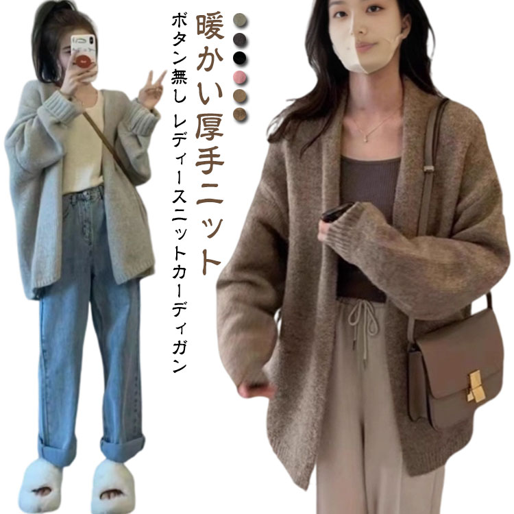 厚手 レディース カーディガン オーバーサイズ カーデ アウター ボレロ 厚手ニット ノーボタン 春秋 秋冬 体型カバー コート セーター カジュアル ドロップショルダー ニットコ コーディガン