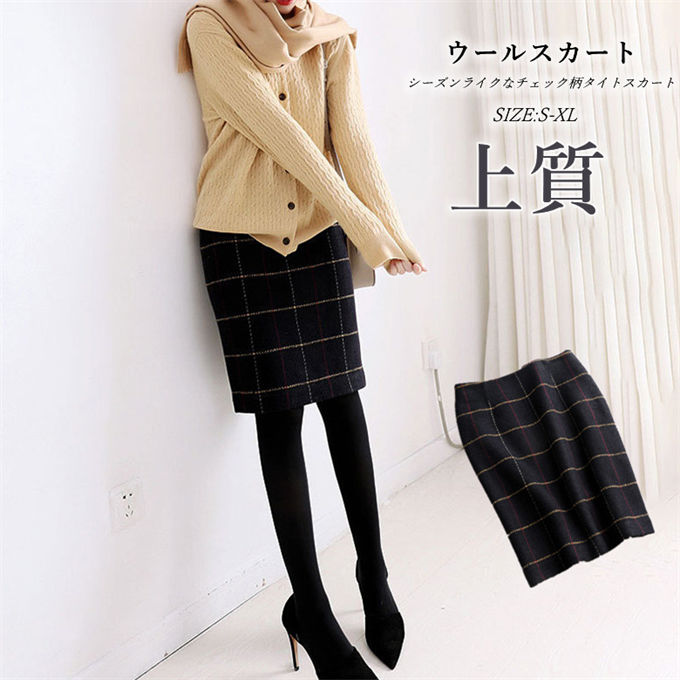 スカート レディース ウールスカート チェック柄 タイトスカート