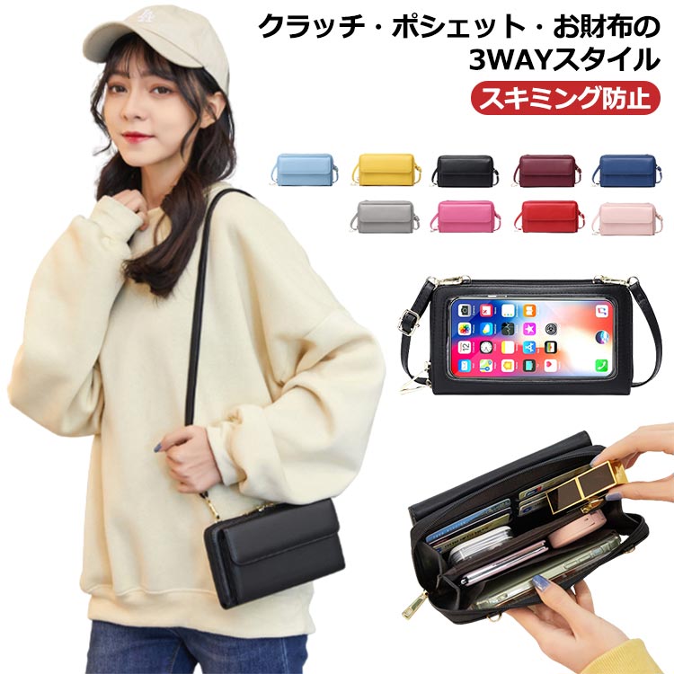 ポシェット スマホポシェット スマホ 通帳ケース かわいい カードケース おしゃれ 入れたまま カメラ RFID機能 ショルダーバッグ タッチパネル操作 クラッチ 横 大容量 スキミング防止 か 軽量