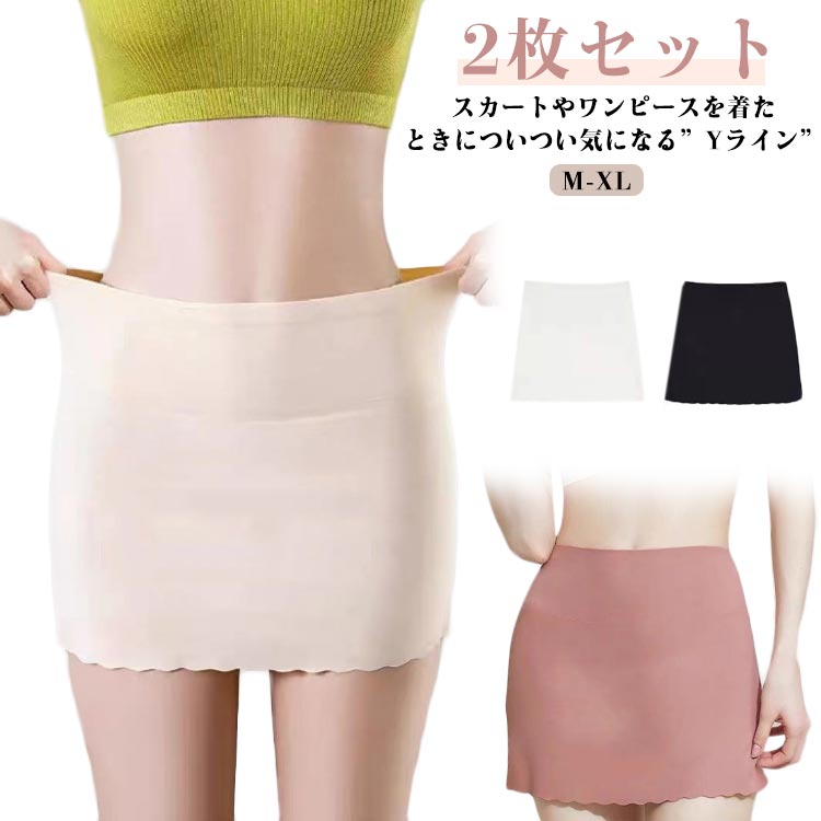 2枚セット スカート ワンピース ヒップライン ペチインナー カバーパンツ 快適 マーメイド Yラインカバー 張り付き解消 ペチショーツ ペチパンツ Aライン ジャンスカ ワン ティアード